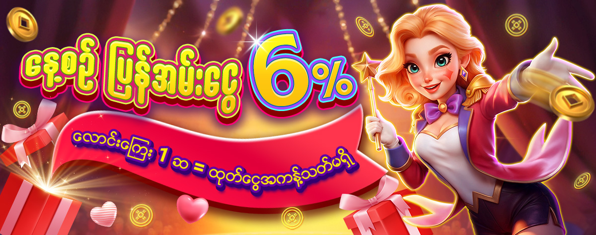 📌 ေန႔စဥ္ စုစုေပါင္းသြင္းေငြ 300,000 Ks ႏွင့္ အထက္ ရွိပါက မန္ဘာတိုင္း တစ္ရက္ တစ္ႀကိမ္ ေဘာနပ္ခံစားႏိုင္သည္။